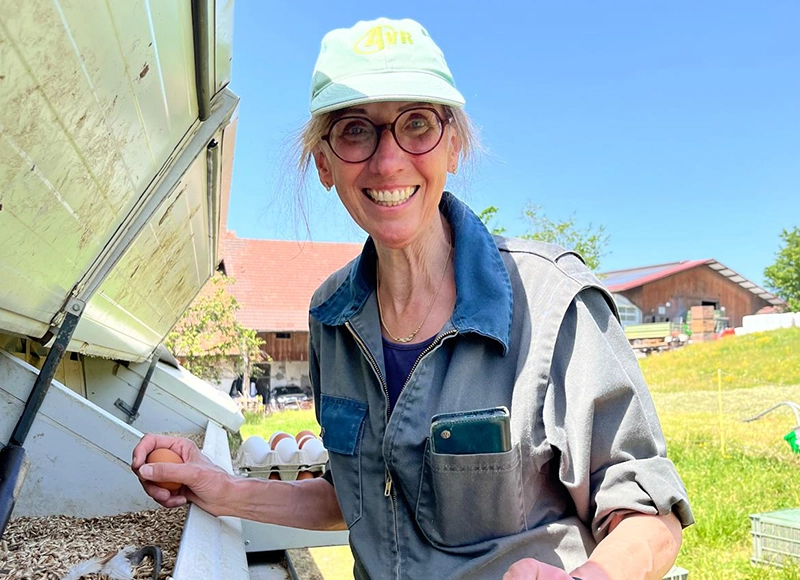Astrid ist unser Hühnermami – sie schaut täglich nach dem Rechten, sammelt die Eier ein und pflegt unsere Hühner mit viel Herz.